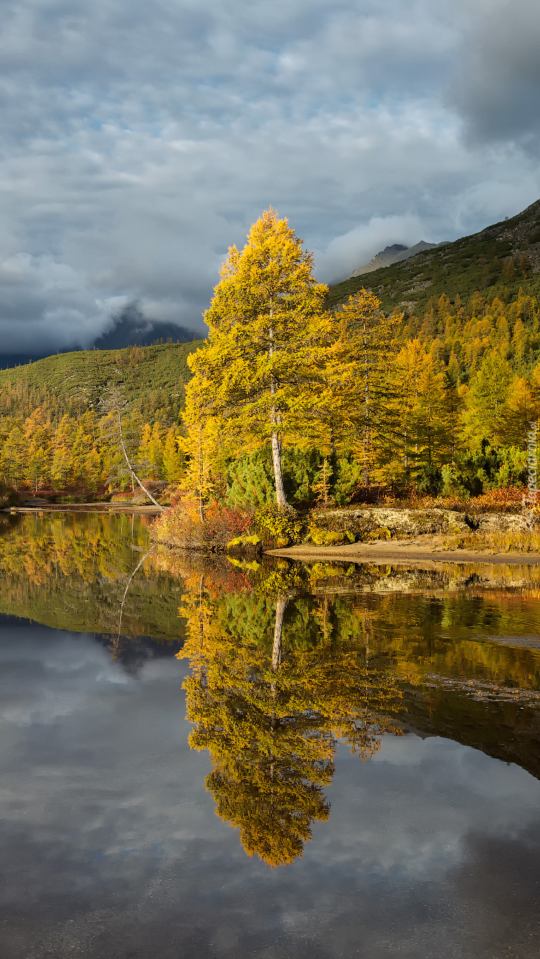 Edytor tapety: Żółte drzewa nad jeziorem Nevidimka