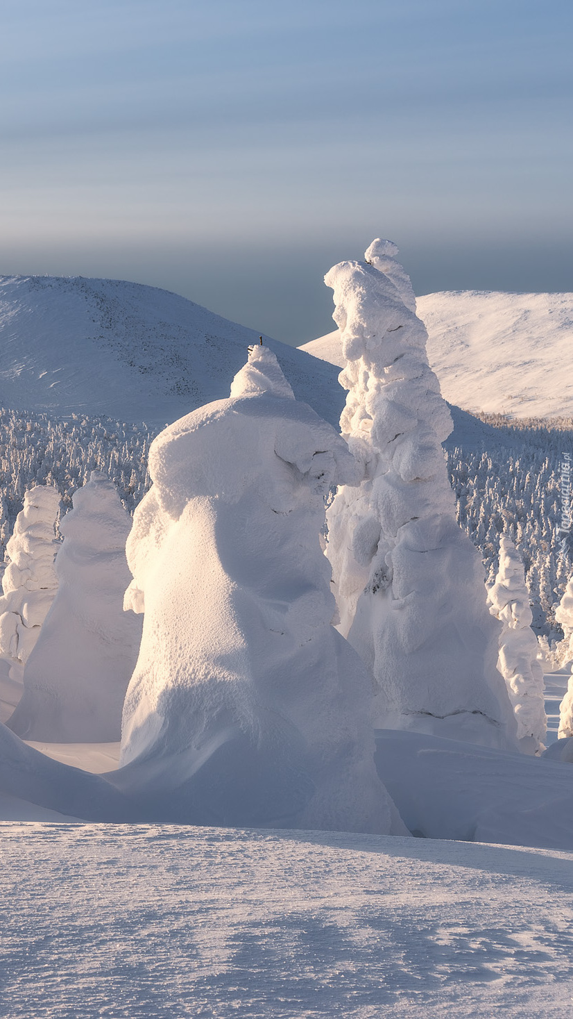 Edytor tapety: Ośnieżony las w górach