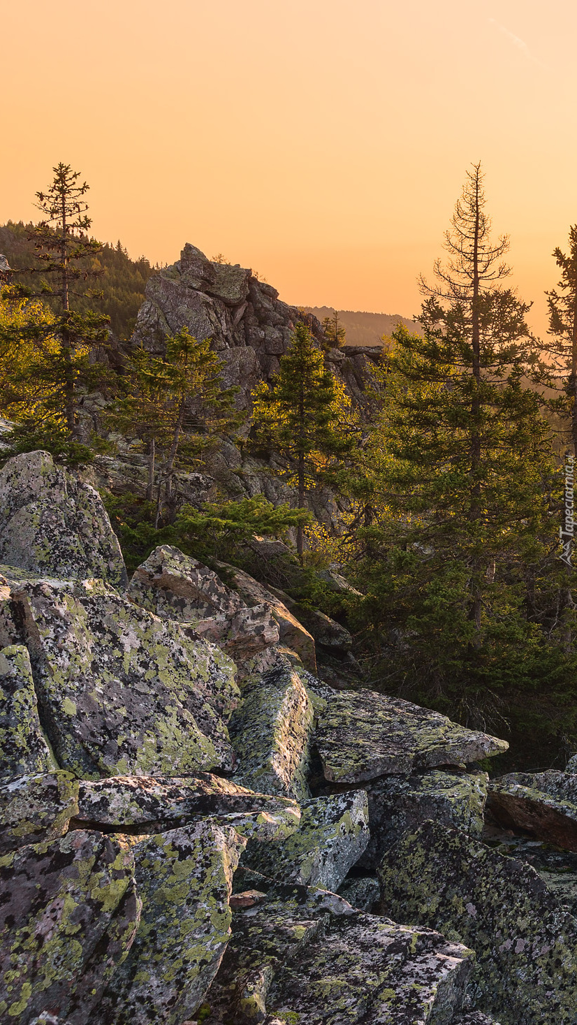 Edytor tapety: Drzewa na tle skał
