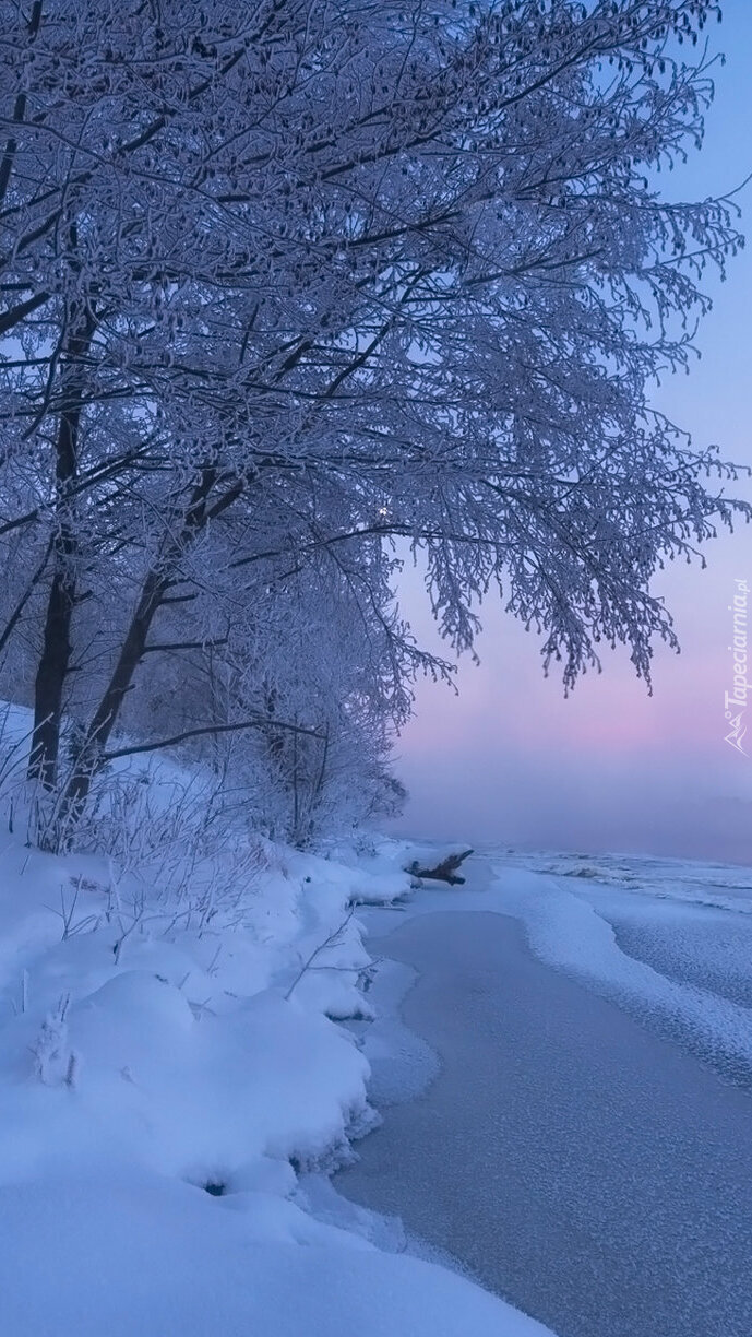 Edytor tapety: Ośnieżone drzewa nad rzeką