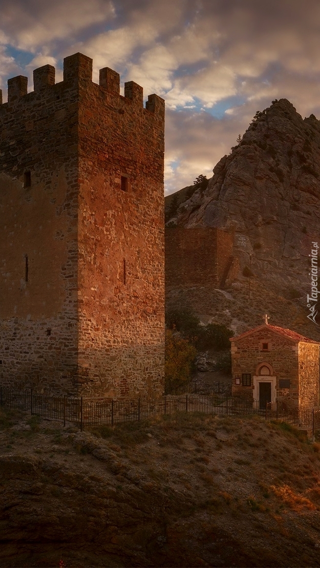 Edytor tapety: Wieża i kaplica w górach