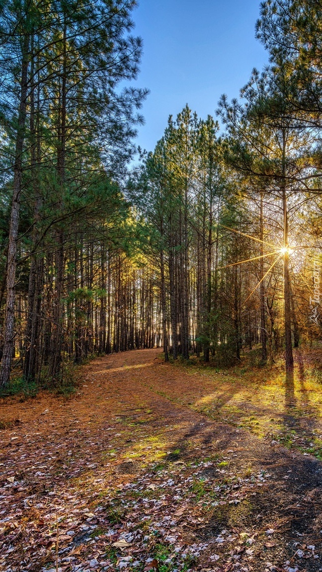 Edytor tapety: Promienie słońca między drzewami
