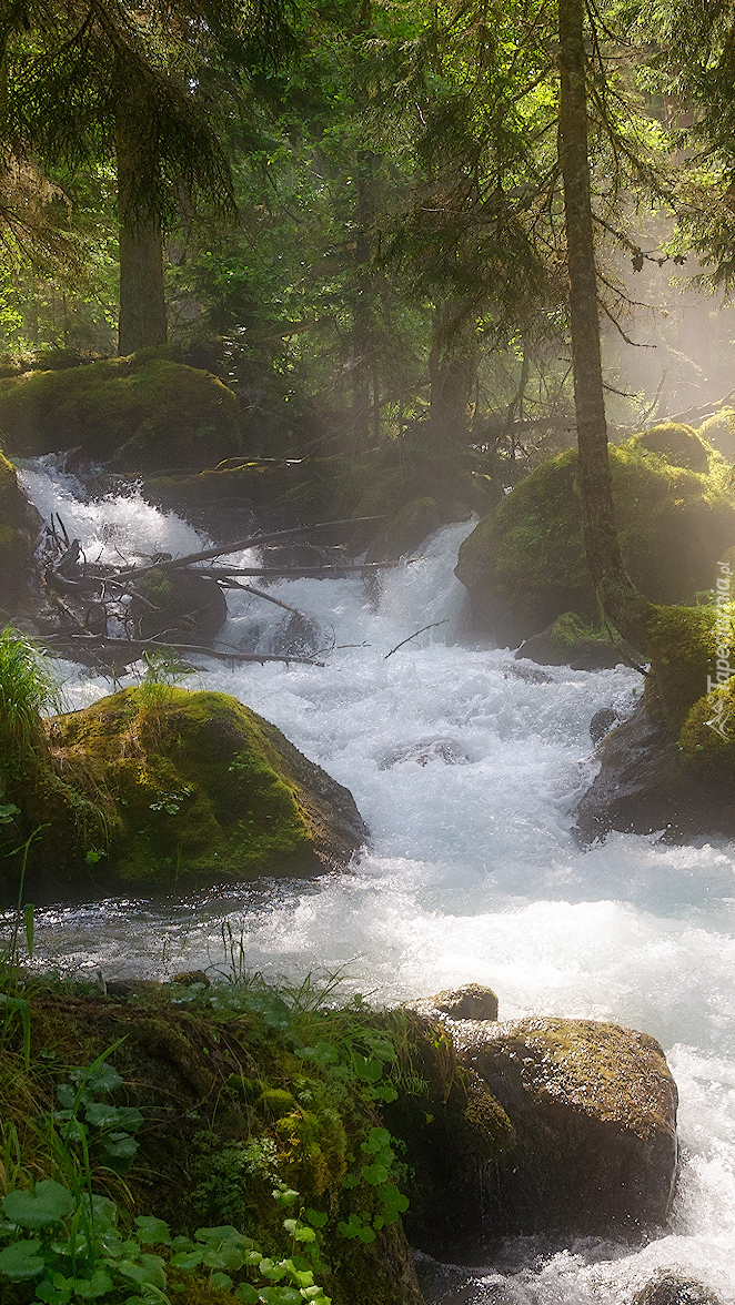 Edytor tapety: Omszałe kamienie w leśnej rzece
