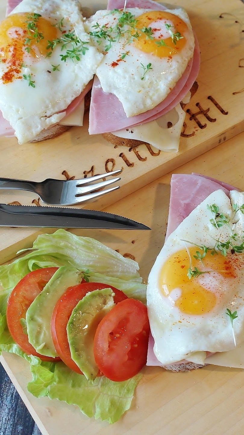 Edytor tapety: Kanapki z jajkami sadzonymi na śniadanie
