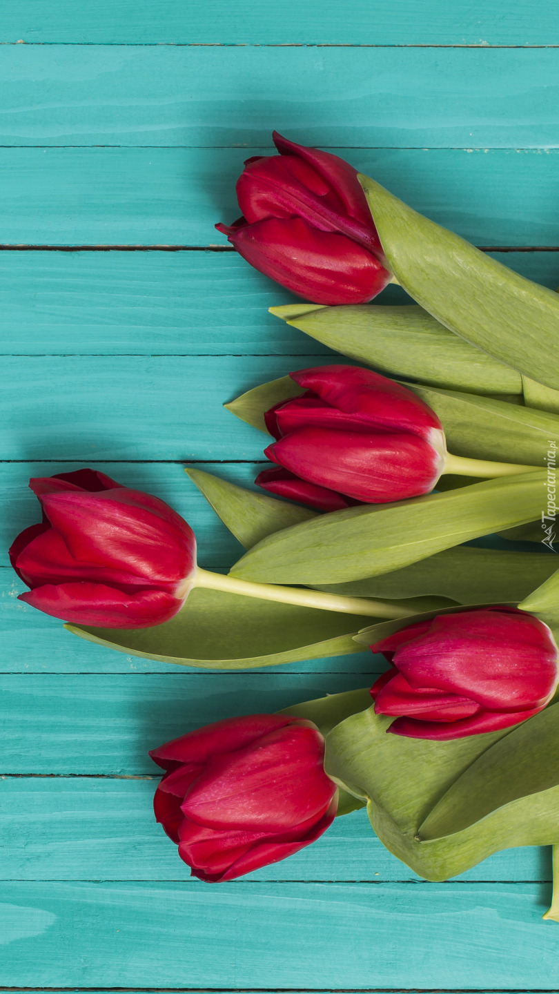 Edytor tapety: Pięć czerwonych tulipanów