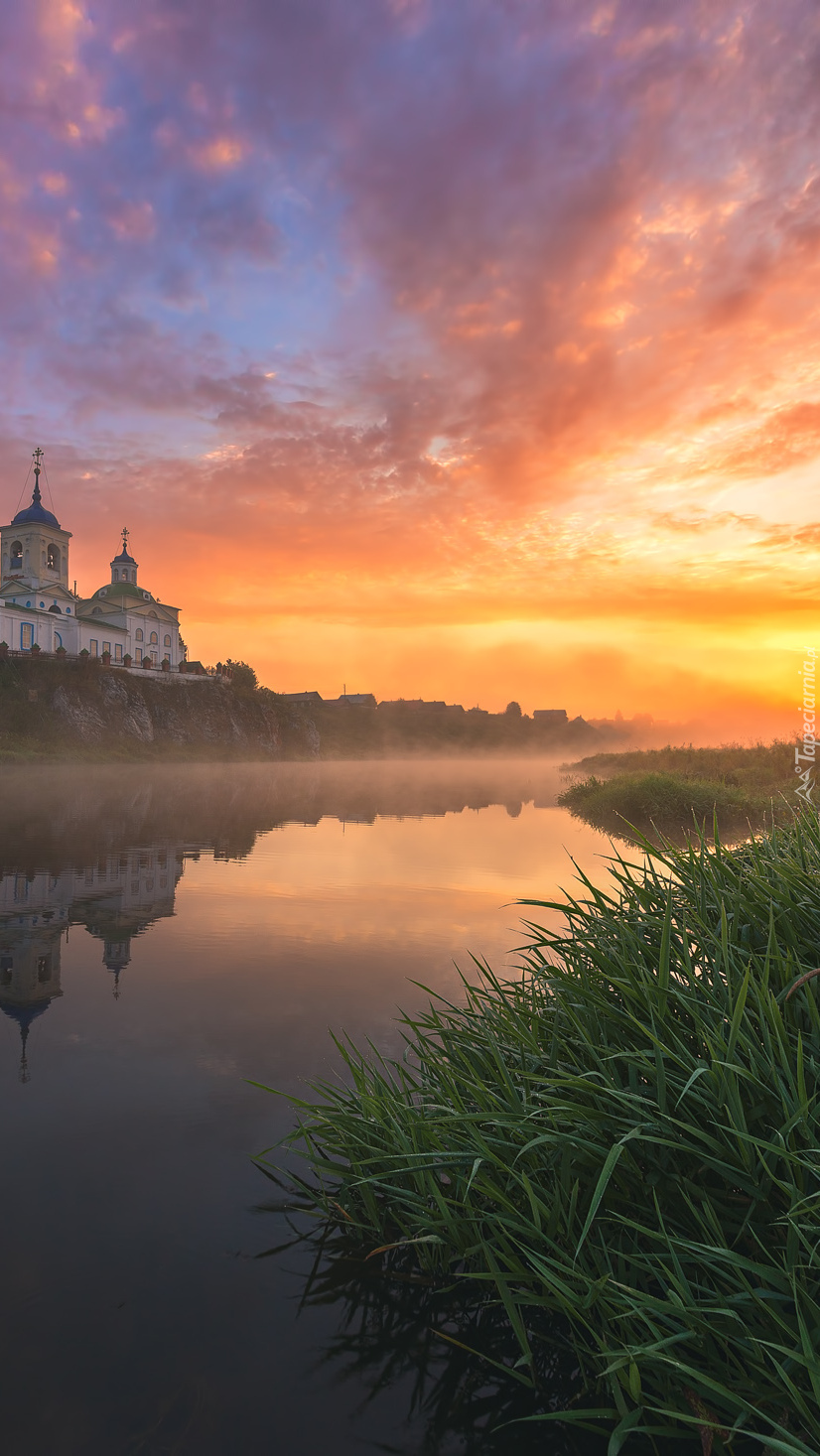 Edytor tapety: Cerkiew nad zamgloną rzeką