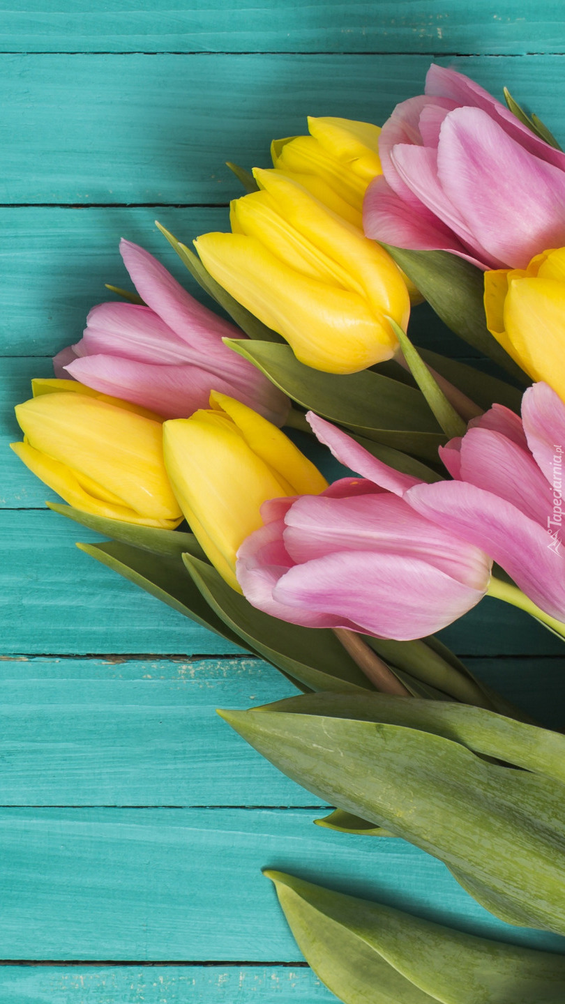 Edytor tapety: Żółte i różowe tulipany