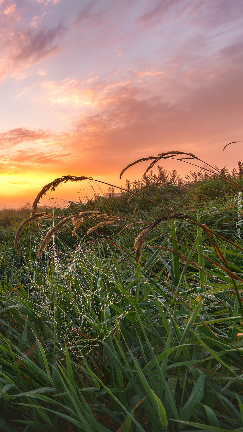 Edytor tapety: Pajęczyna na trawie