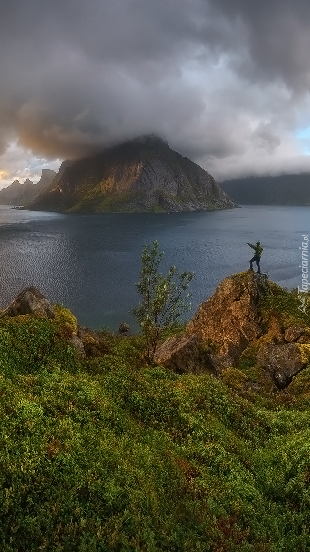 Edytor tapety: Góra Higravstinden i morze Norweskie