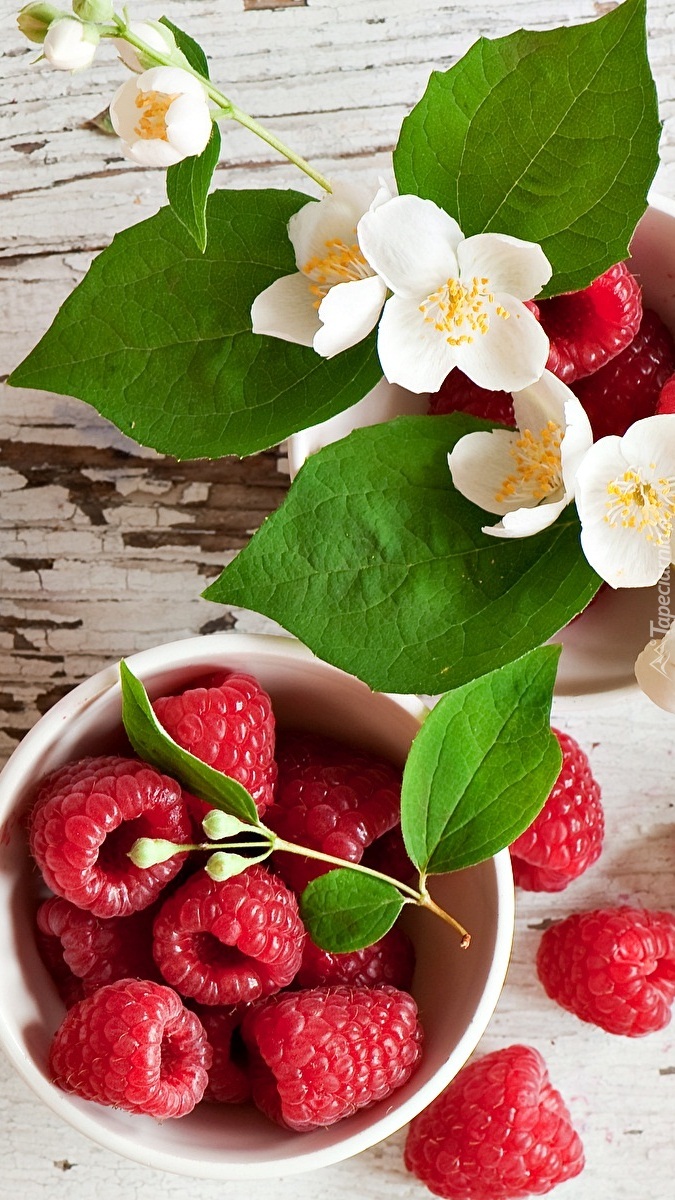 Edytor tapety: Gałązka kwitnącego jaśminu i maliny