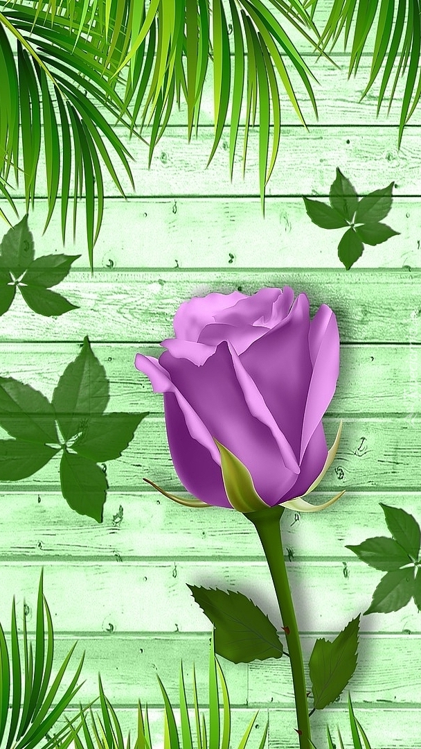 Edytor tapety: Fioletowa róża wśród zielonych liści