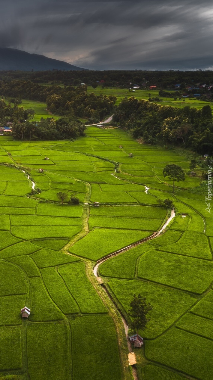Edytor tapety: Ciemne chmury nad polami