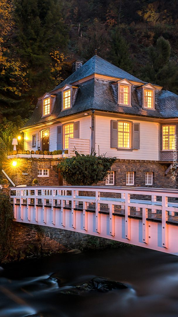 Edytor tapety: Dom przy moście nad rzeką