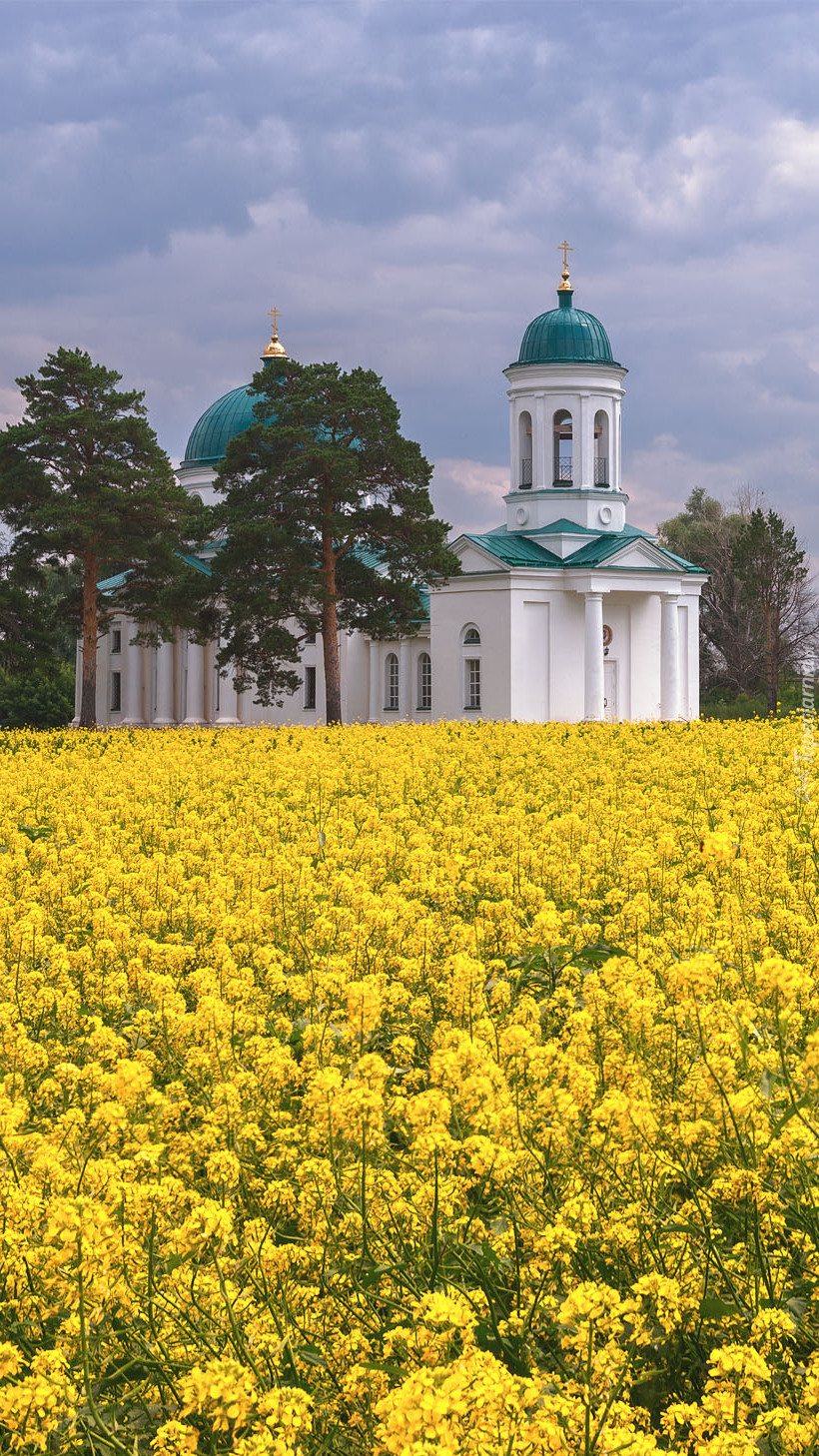 Edytor tapety: Kościół na polu rzepakowym