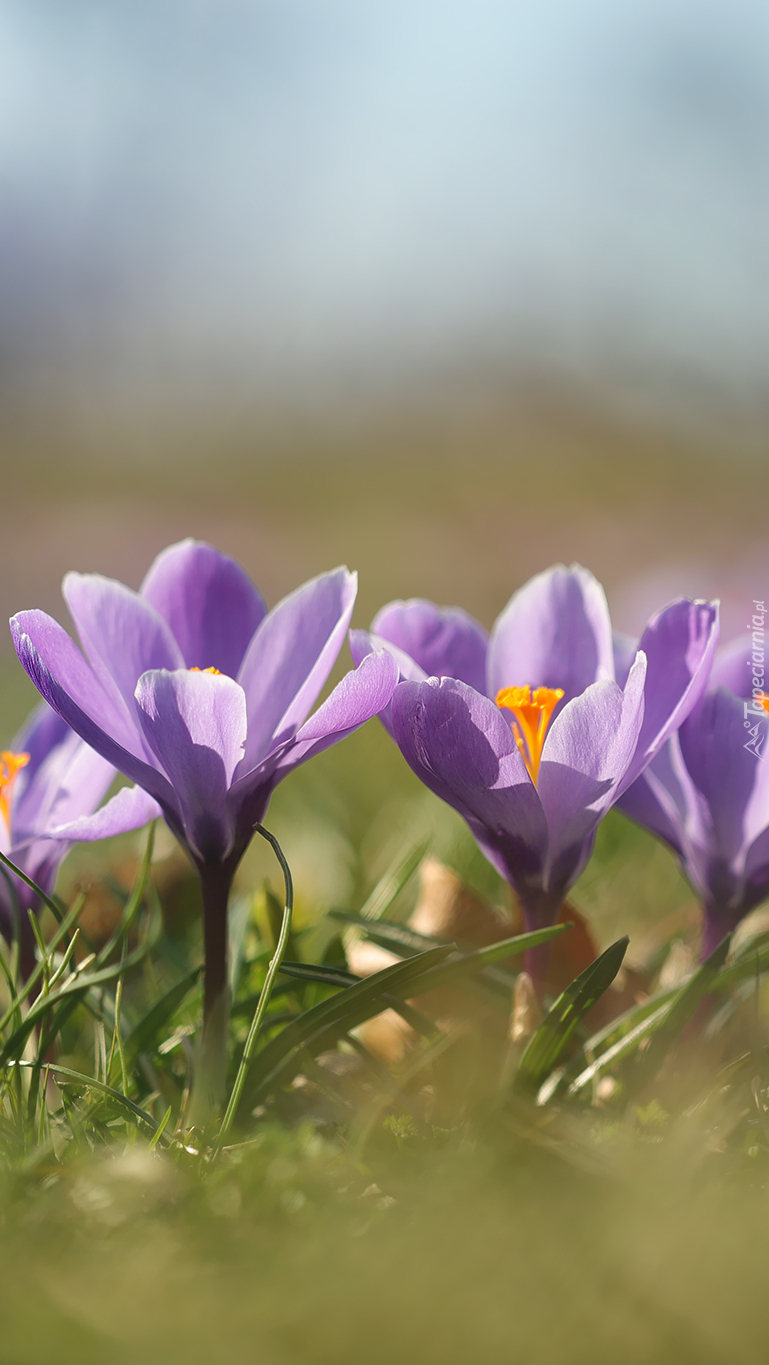 Edytor tapety: Kilka fioletowych krokusów