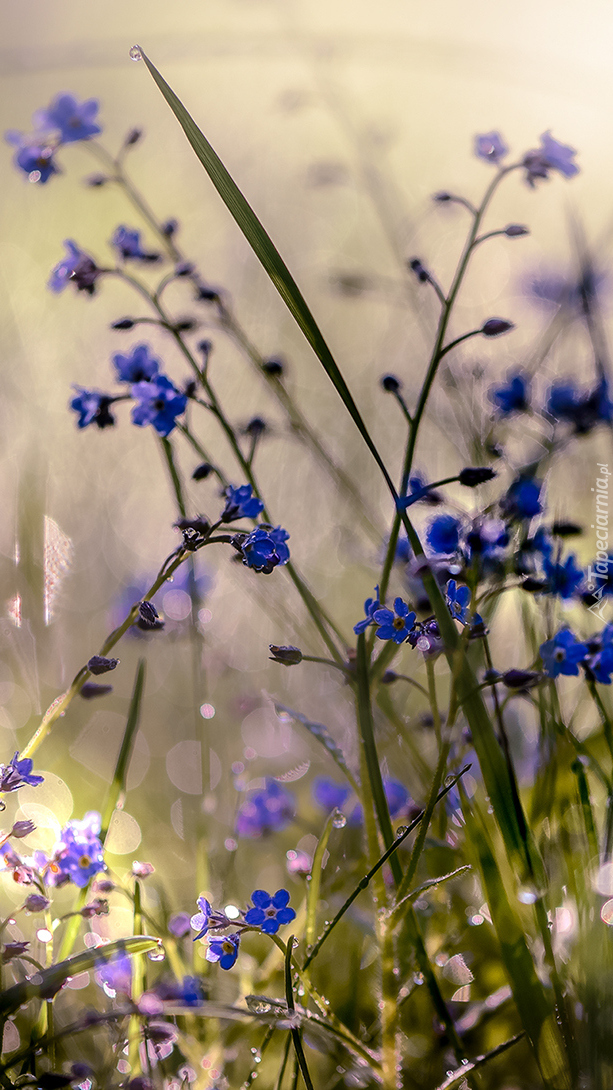 Edytor tapety: Niebieskie niezapominajki w trawie