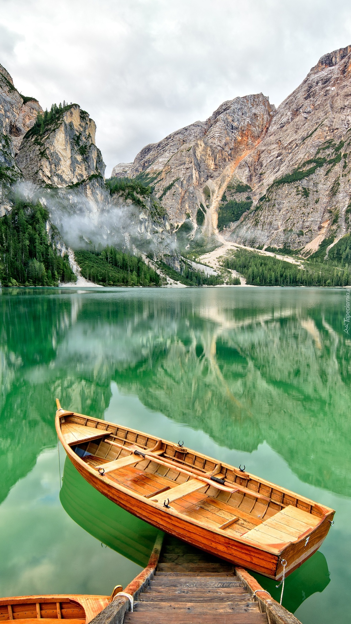 Edytor tapety: Łódki na jeziorze Pragser Wildsee