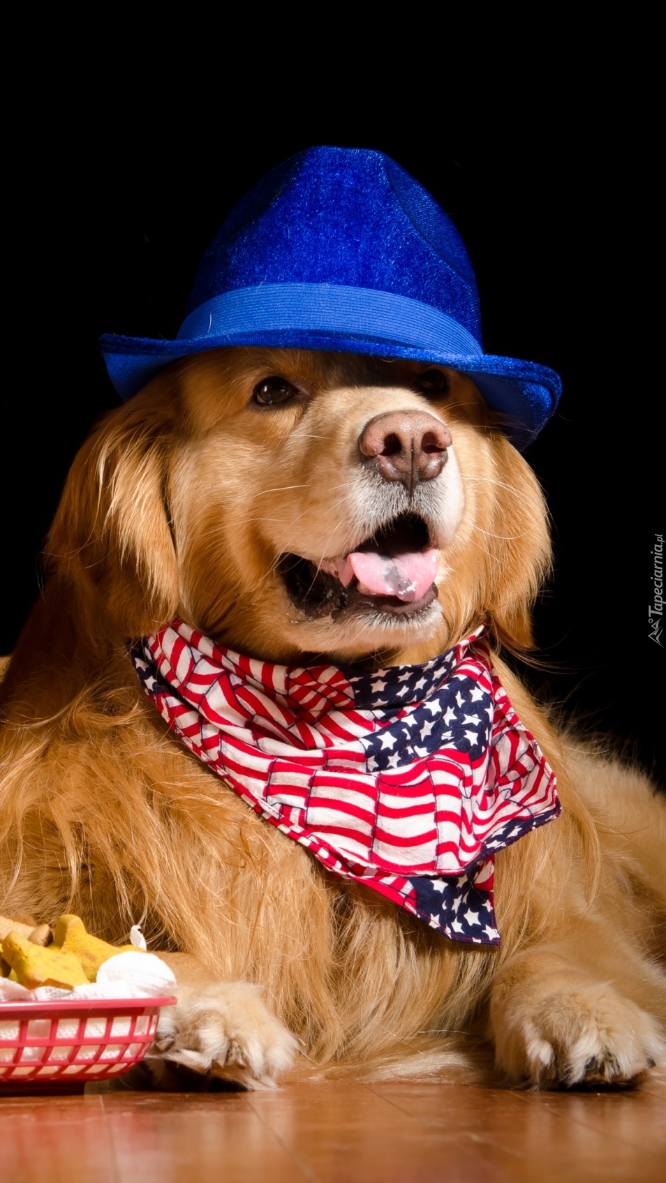 Edytor tapety: Golden retriever w niebieskim kapeluszu