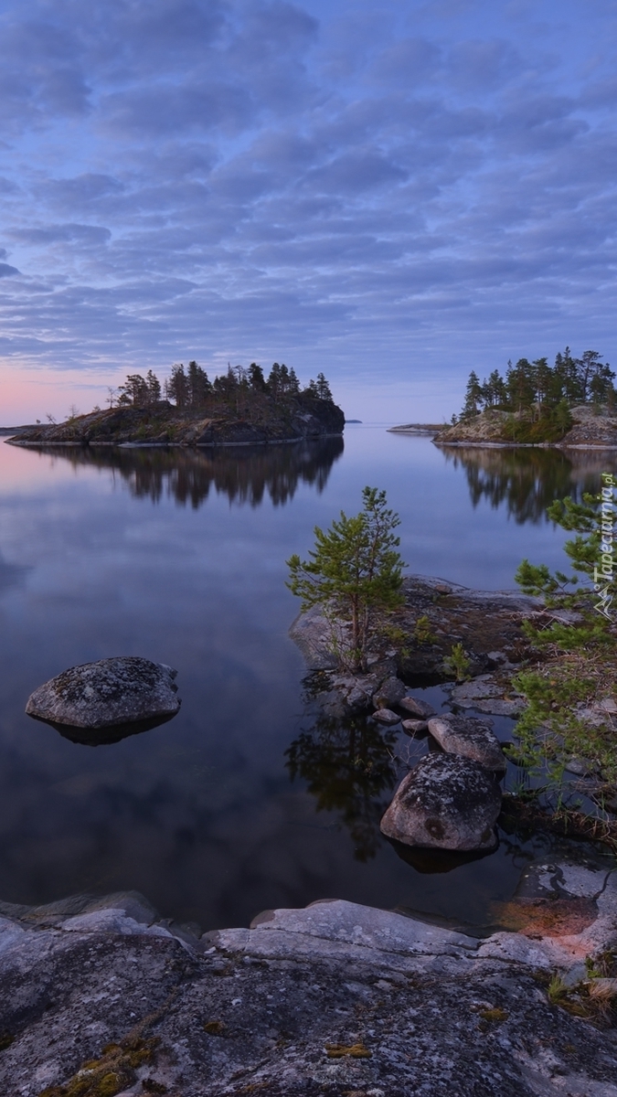 Edytor tapety: Jezioro Ładoga z wysepkami i drzewami