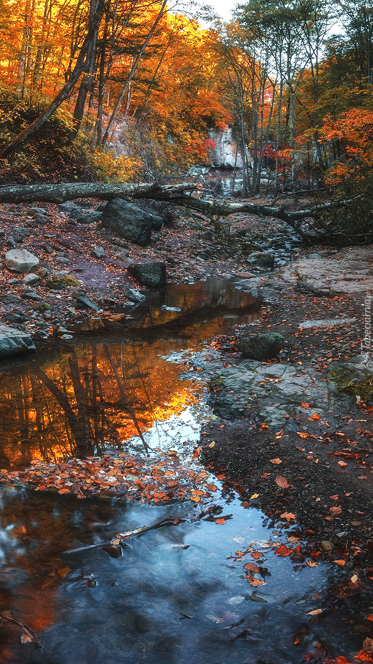 Edytor tapety: Powalone drzewo nad rzeczką