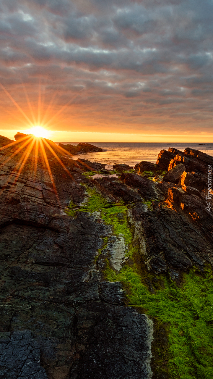 Edytor tapety: Promienie słońca padające na omszałe skały
