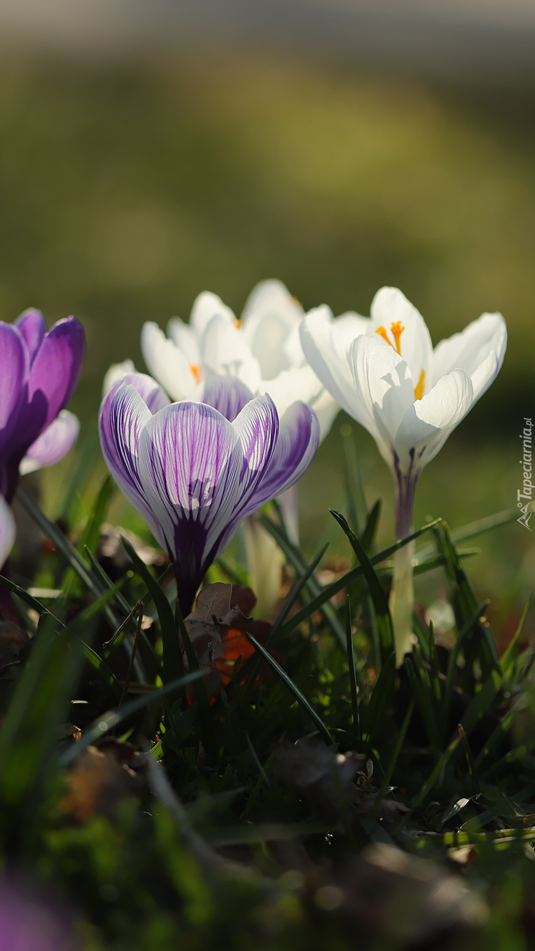 Edytor tapety: Kępka białych i fioletowych krokusów