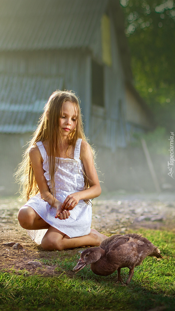 Edytor tapety: Dziewczynka karmiąca kaczkę