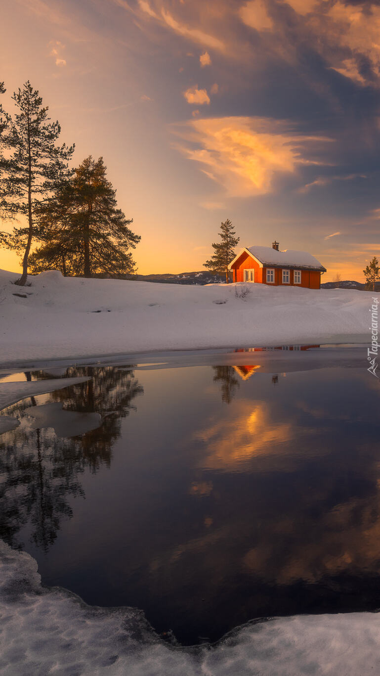 Edytor tapety: Domek nad jeziorem Vaeleren