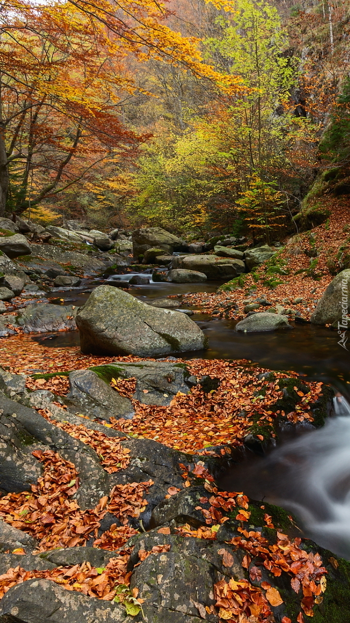 Edytor tapety: Opadłe liście na kamieniach w rzece