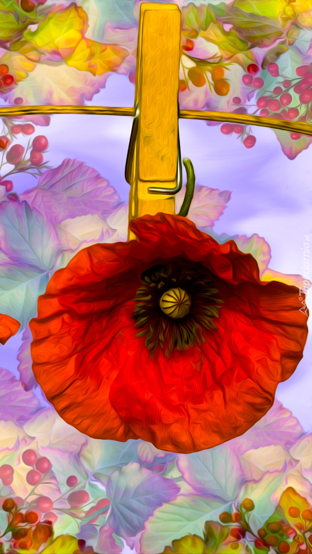 Edytor tapety: Mak przypięty klamerką