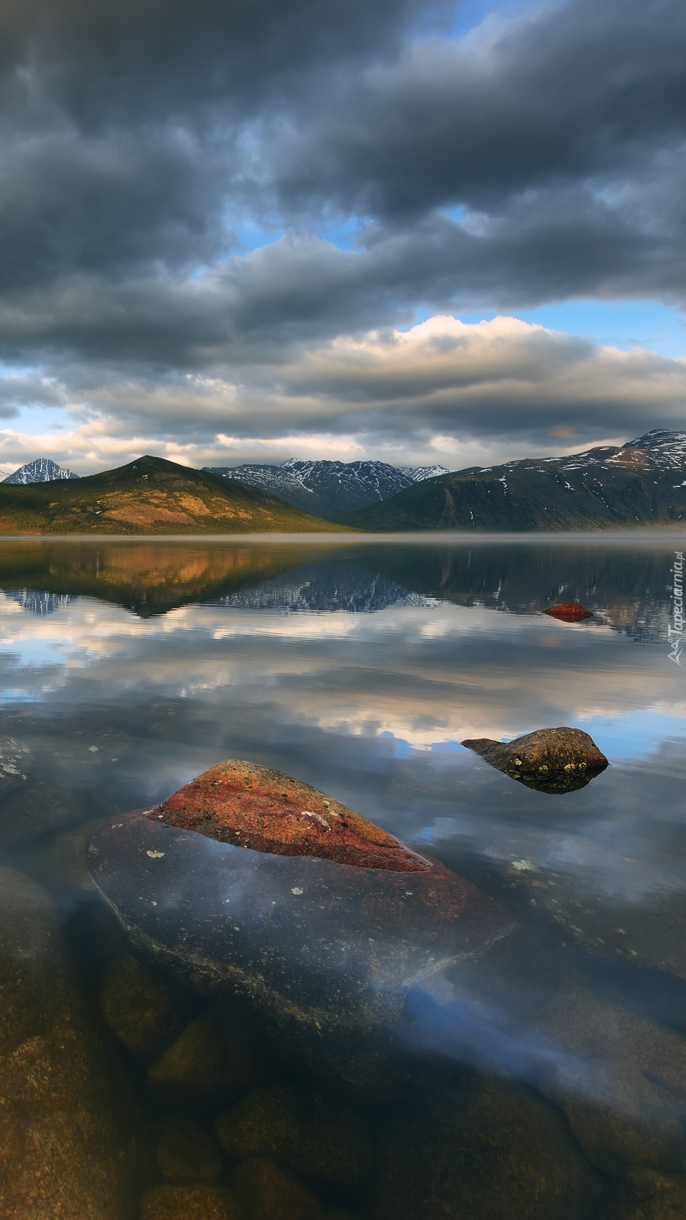 Edytor tapety: Jezioro Jack London pod ciemnymi chmurami