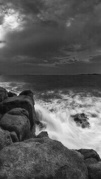 Edytor tapety: Fale morza Japońskiego uderzające o skały