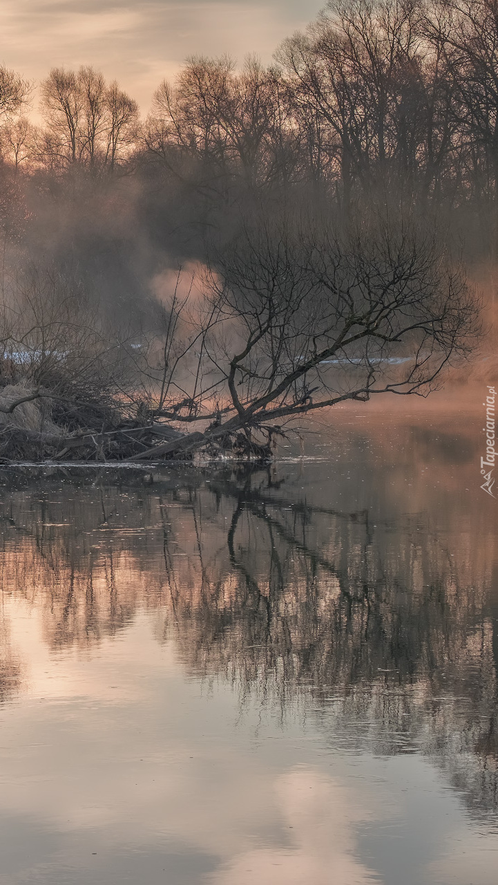 Edytor tapety: Drzewa we mgle nad rzeką Istra
