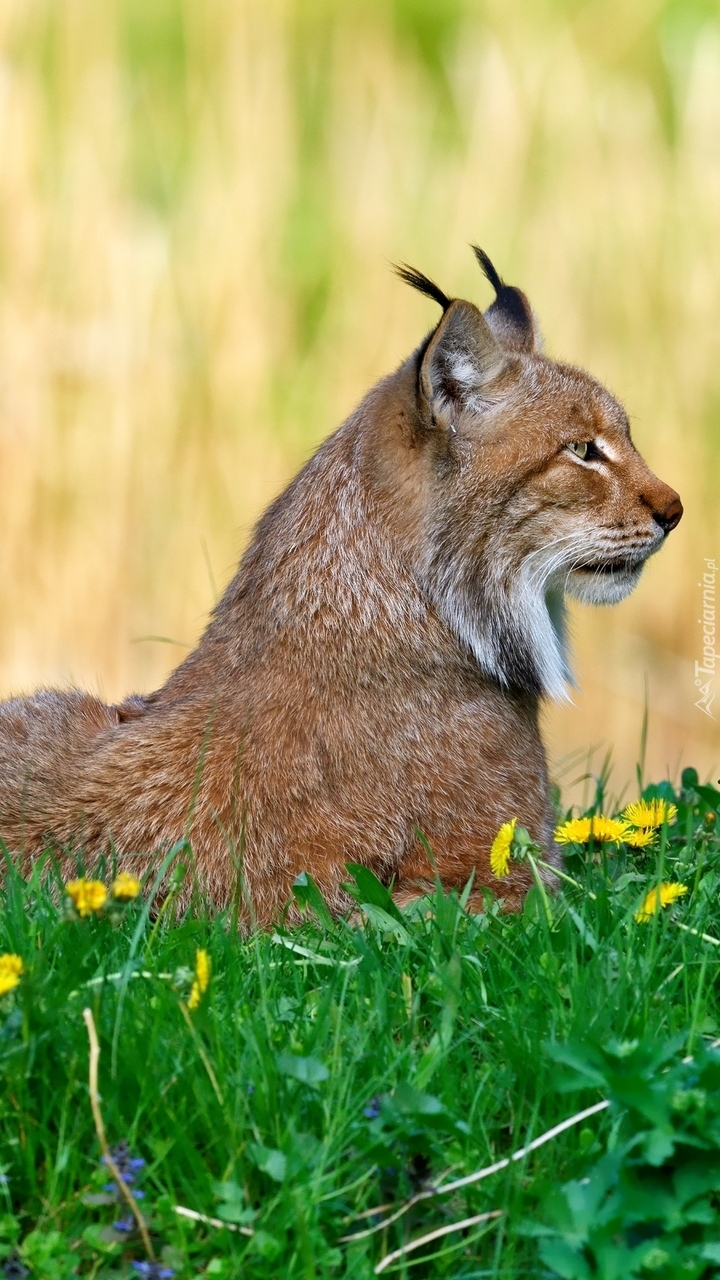 Edytor tapety: Ryś leżący w trawie