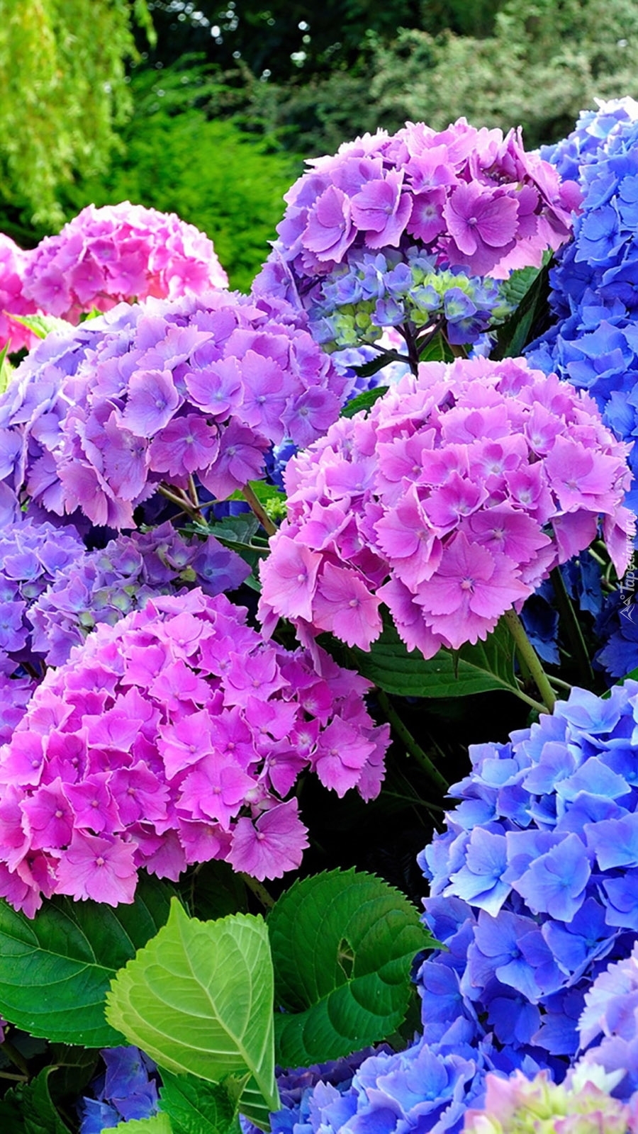 Edytor tapety: Różowe i niebieskie hortensje