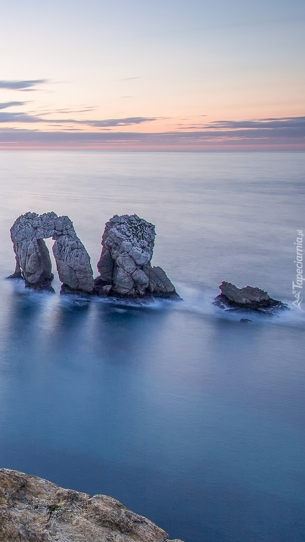 Edytor tapety: Błękitne niebo nad morskimi skałami