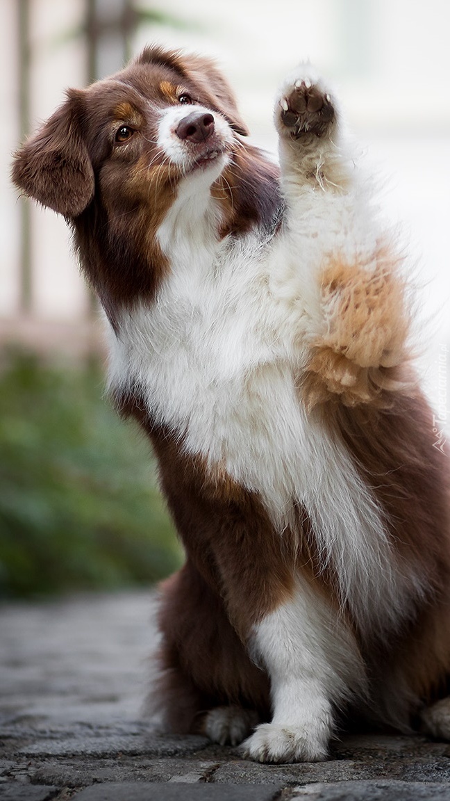 Edytor tapety: Owczarek australijski z uniesioną łapką