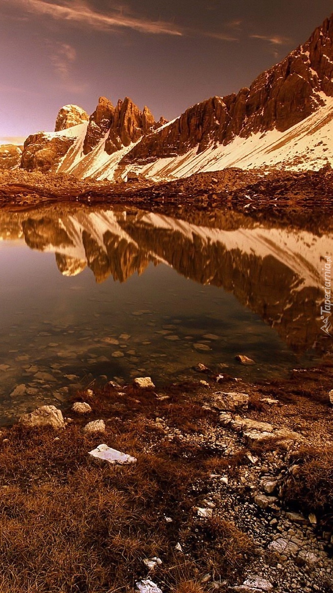 Edytor tapety: Góry skąpane w toni jeziora