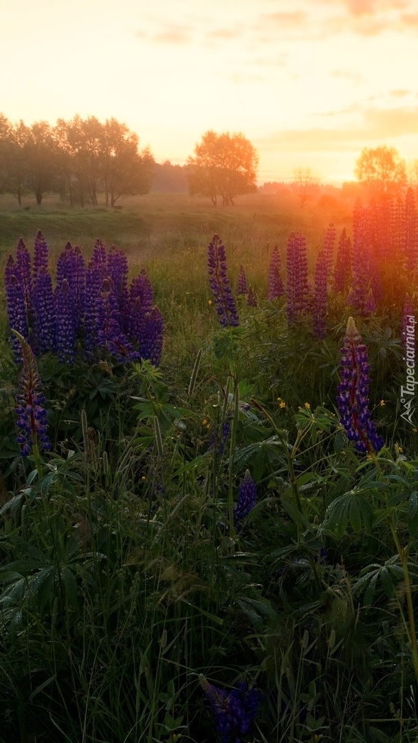 Edytor tapety: Łubinowa łąka o poranku