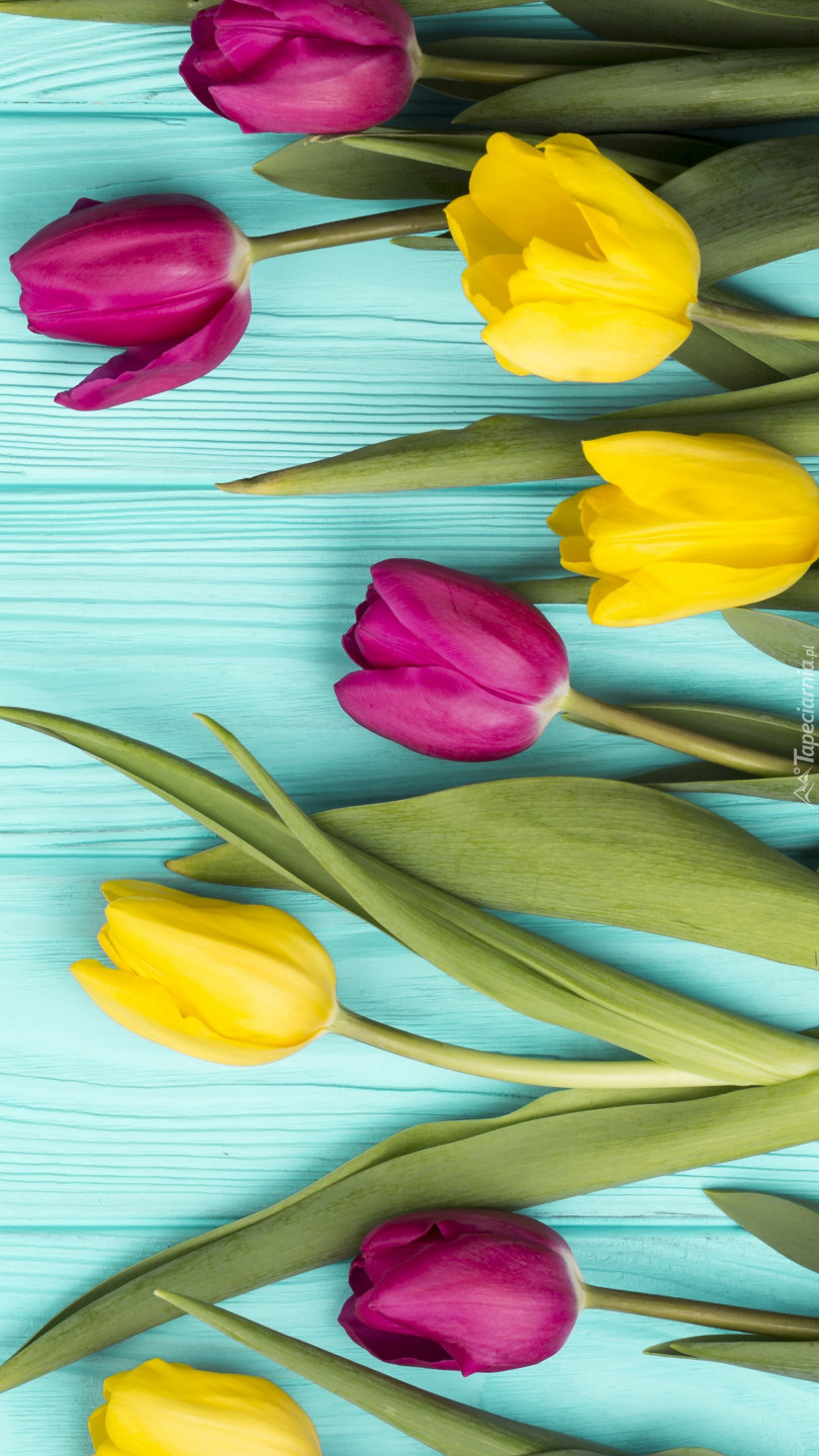 Edytor tapety: Żółte i różowe tulipany