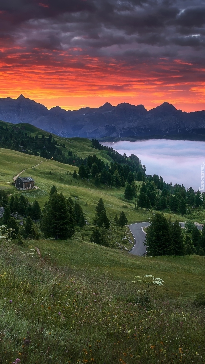 Edytor tapety: Kolorowe niebo nad górami i wzgórzami