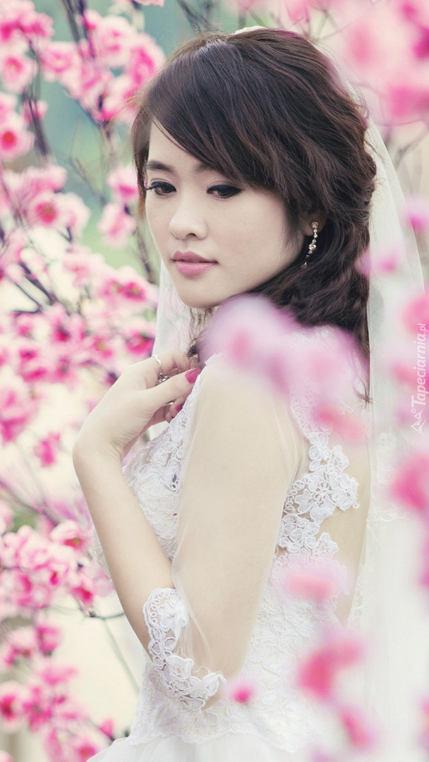 Edytor tapety: Panna młoda w kwiatach wiśni