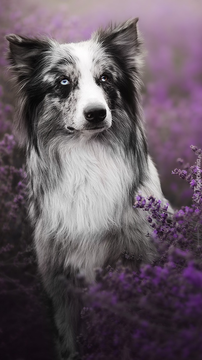 Edytor tapety: Border collie w lawendzie