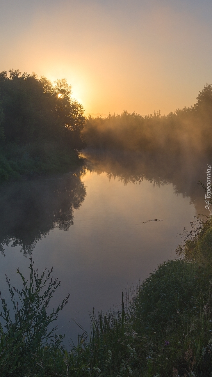 Edytor tapety: Mglisty poranek nad rzeką