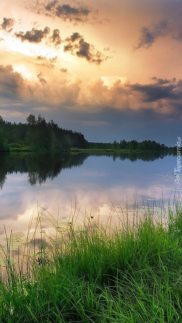 Edytor tapety: Trawa i drzewa nad rzeką