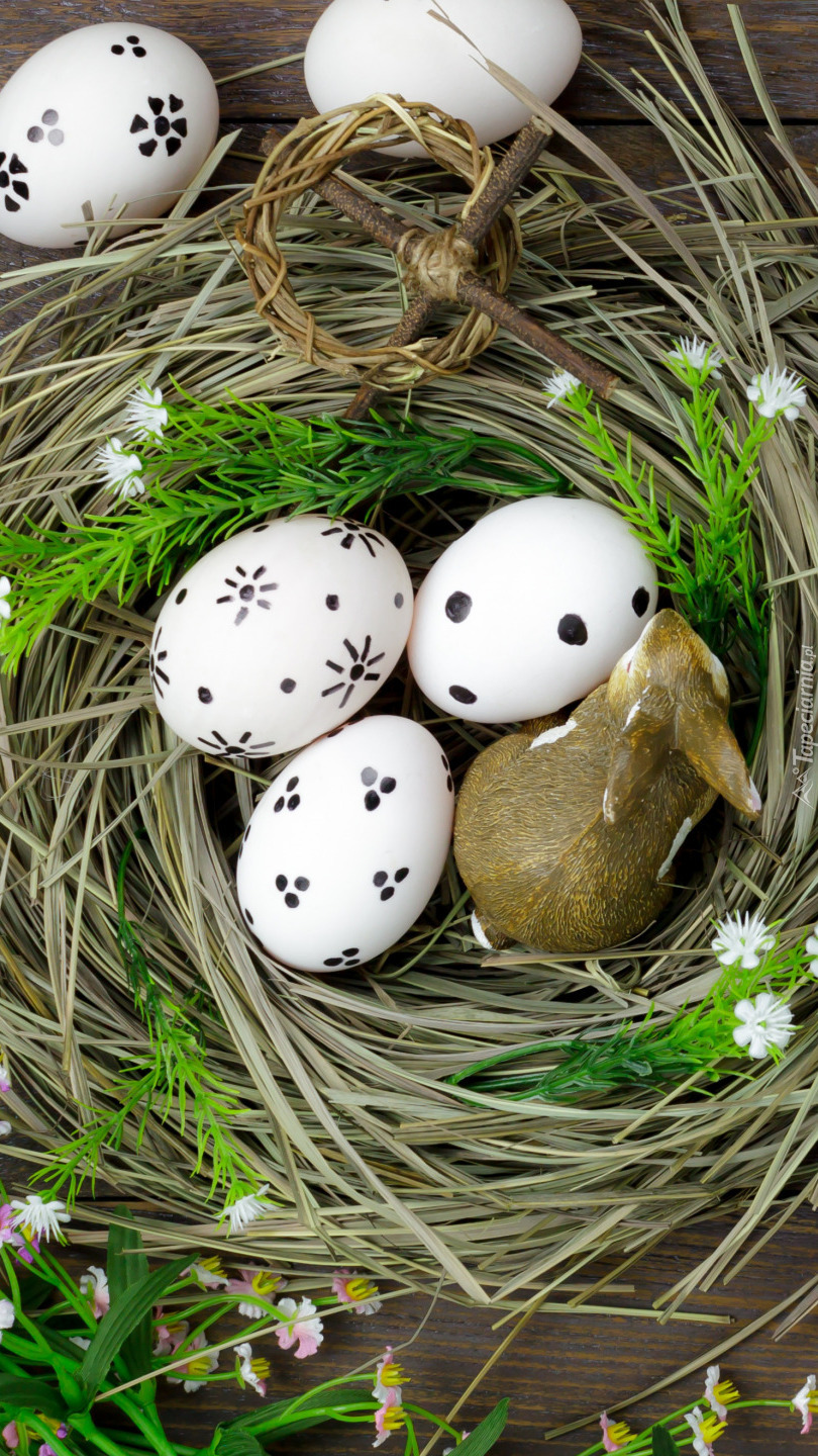 Edytor tapety: Zajączek i pisanki w gniazdku
