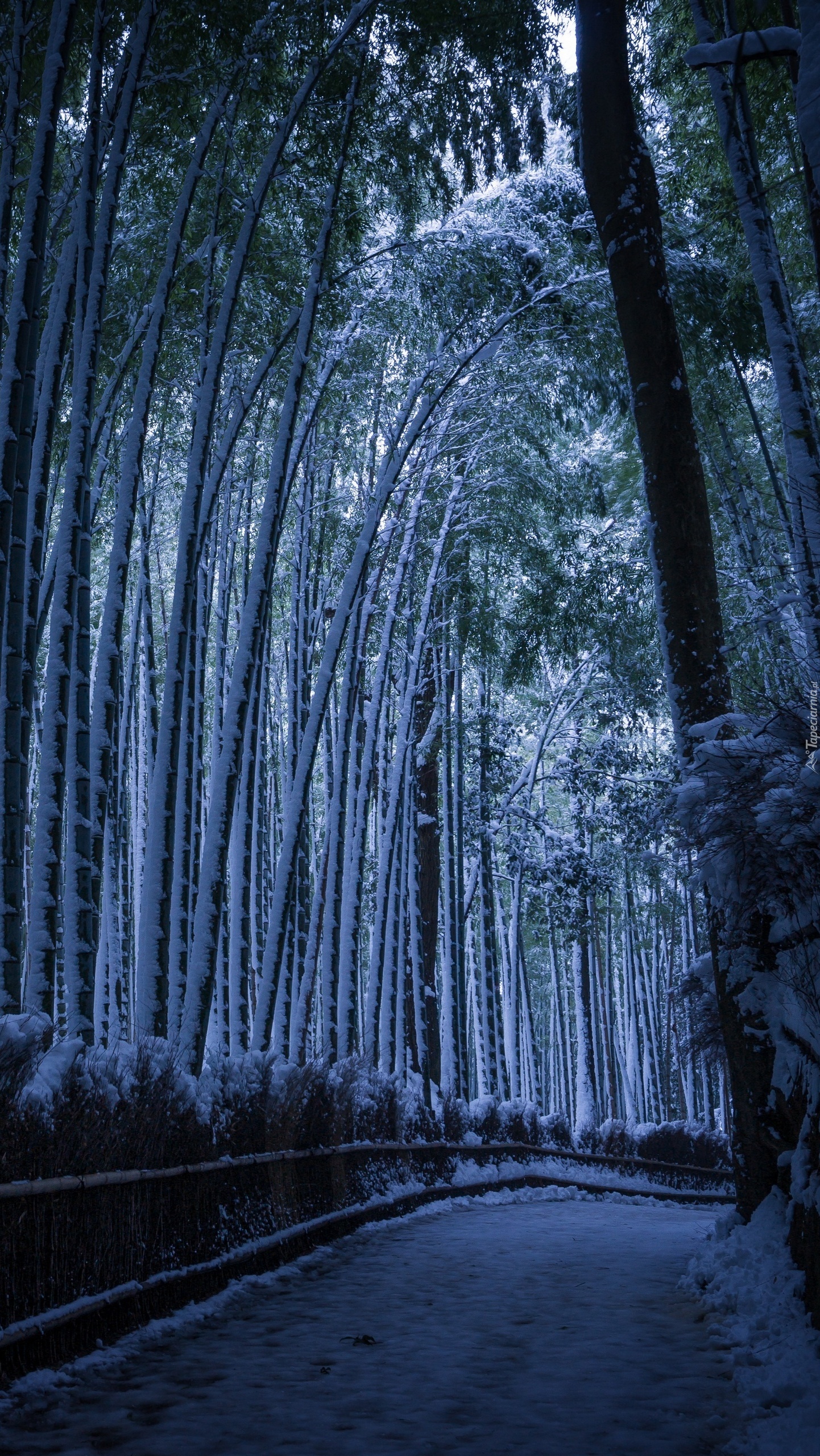 Edytor tapety: Ośnieżone drzewa nad drogą