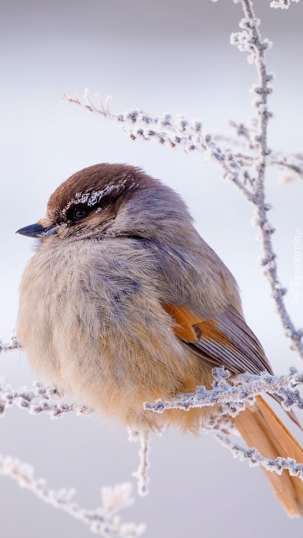 Edytor tapety: Sójka syberyjska na oszronionej gałązce