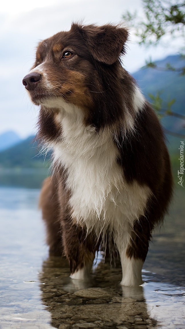 Edytor tapety: Owczarek australijski z łapkami w wodzie