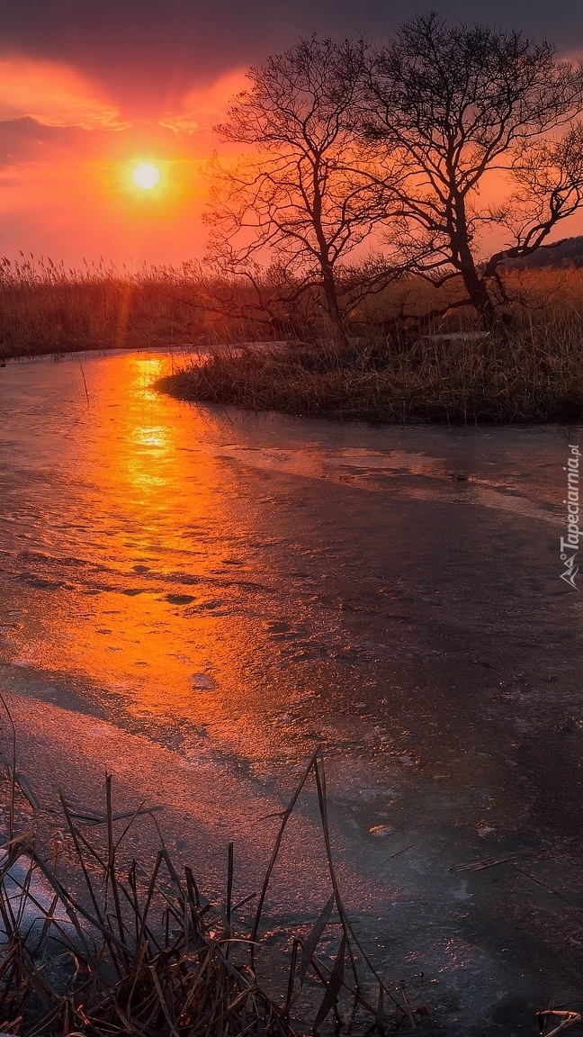Edytor tapety: Zachód słońca nad zamarzniętą rzeką
